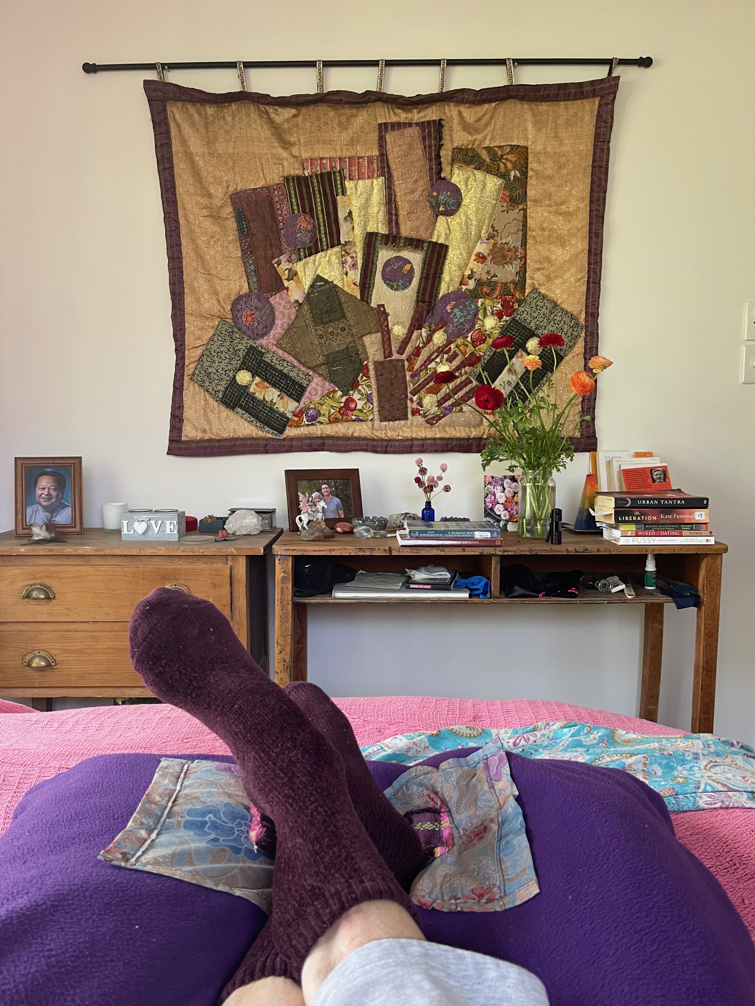 I’m just about functioning ~ promised myself a month off. Today’s the first day. I’m in a strange and new place. The exhaustion’s familiar… the come to a stop. But the place I’m in within and between… is new.