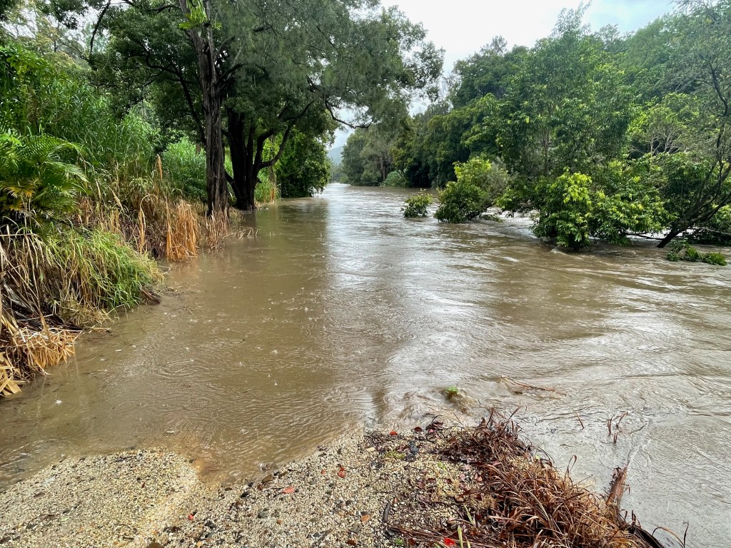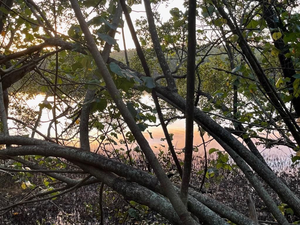 The tide seems to come in… or at least its more noticeable… in a particular spot in the river creek. There’s a stream of it… just in front of the mangroves on the other side.