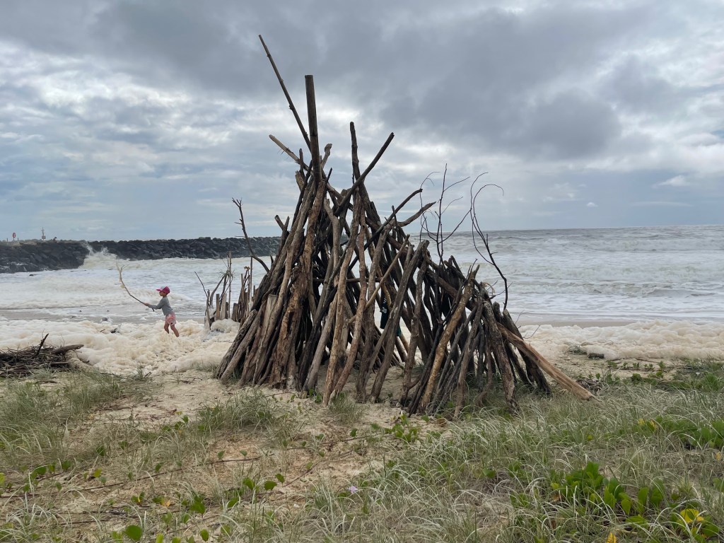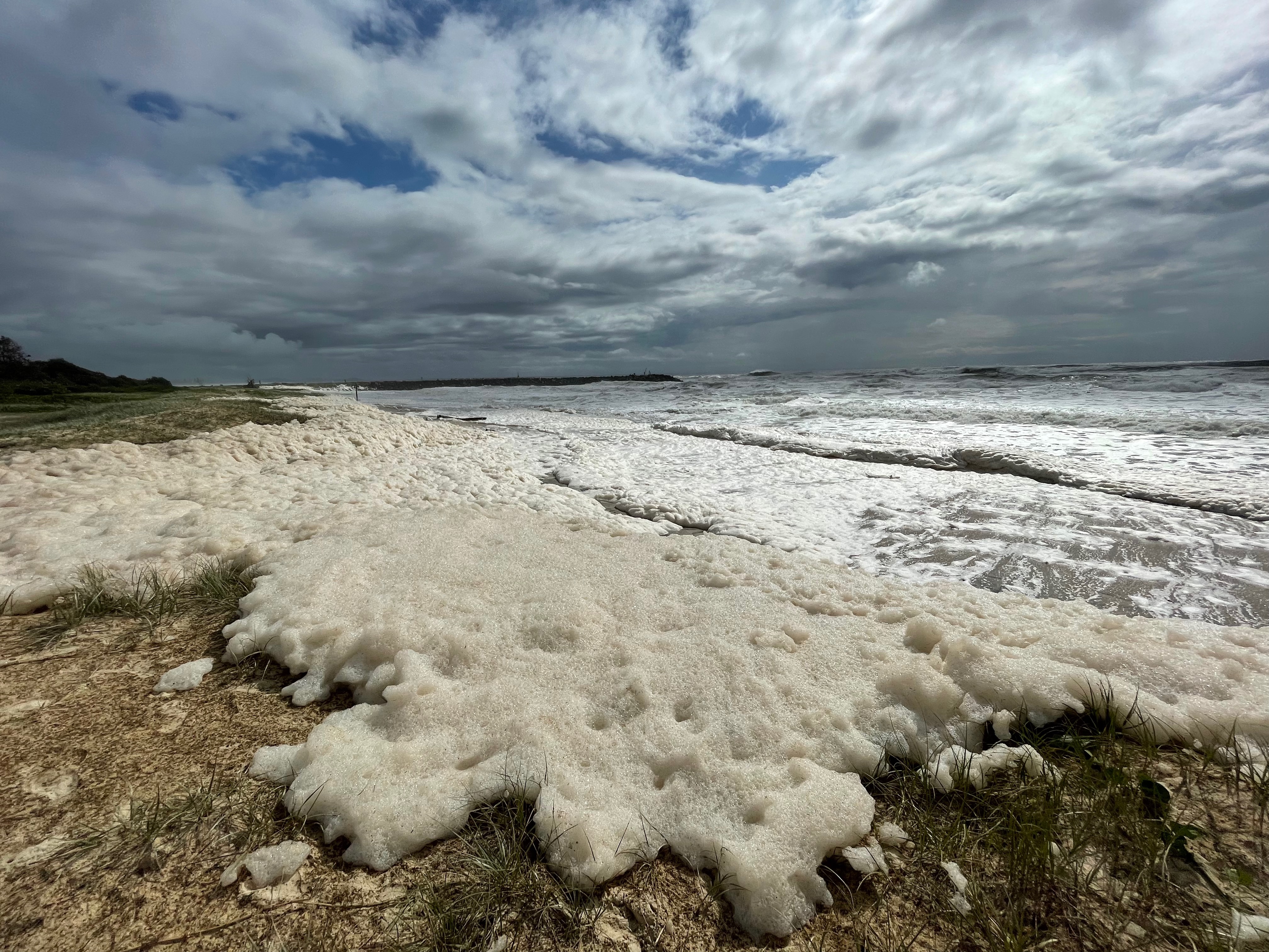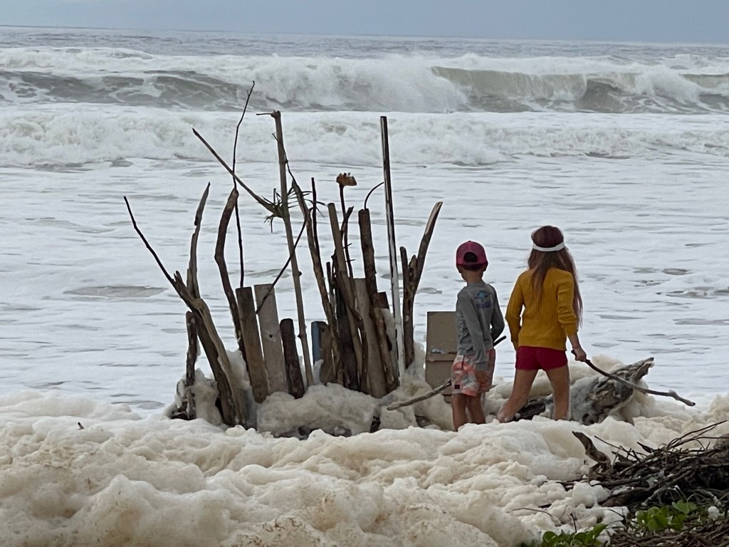 days after the flood… on the beach🐠there was a lot of wood on the beach🪵and lots of froth☁️